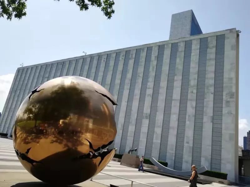 联合国总部里摆列着各国送来的礼物,无一不表露着各国渴望世界和平的心愿。